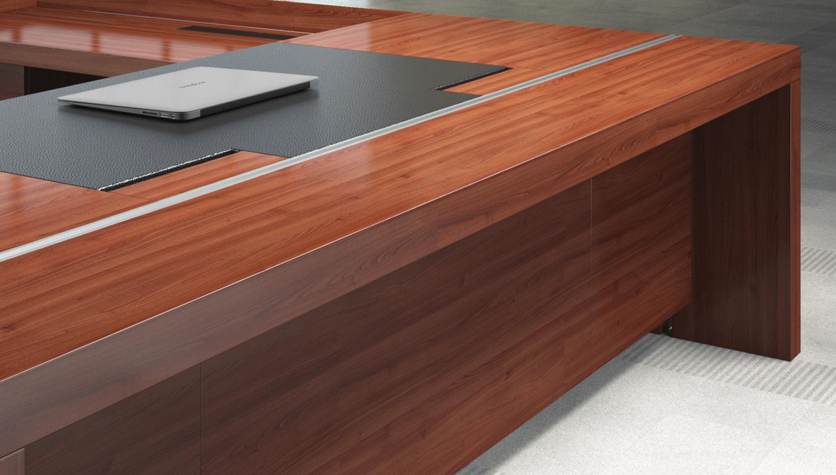 古色古香的色调,主台侧台错落有致,侧台桌面采用了超大尺度的设计,更加彰显拥有者的气度。